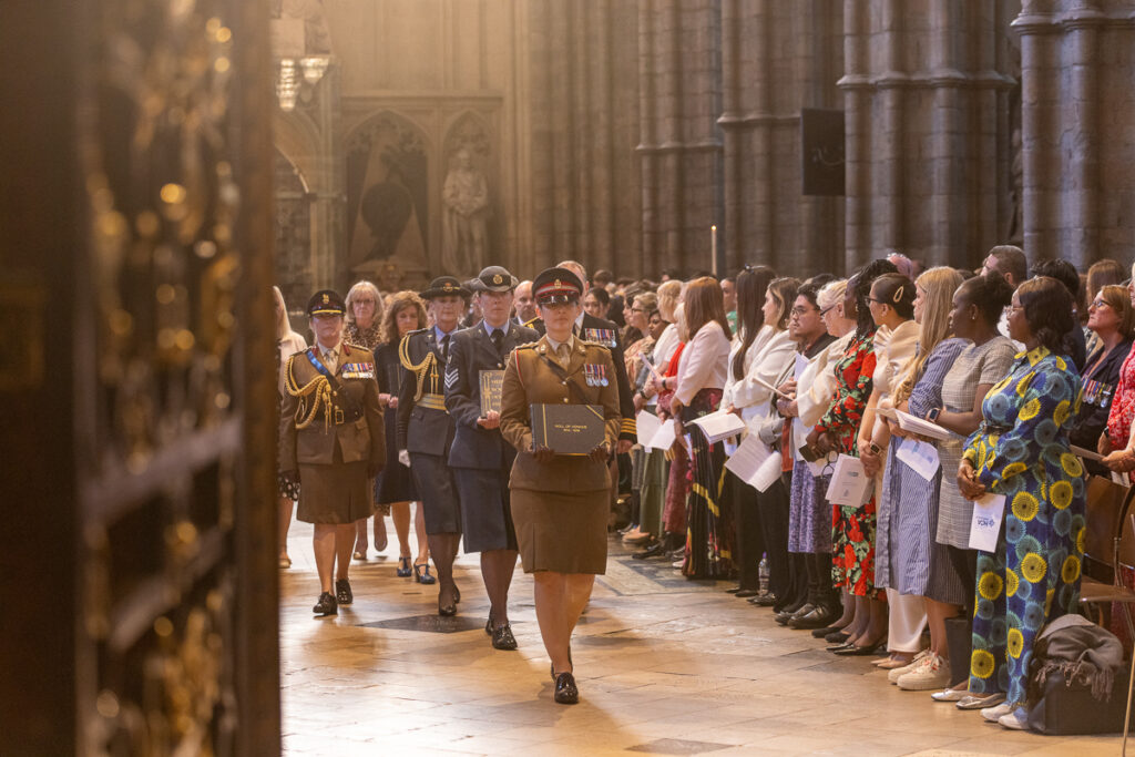 The Nurses’ Roll of Honour is also processed, carried and escorted by the Military Matrons in Chief. Compiled by the British Commonwealth Nurses War Memorial Fund, it commemorates Commonwealth nurses who lost their lives during the Second World War. Between services, it rests in the Florence Nightingale and Nurses Chapel within the Abbey.